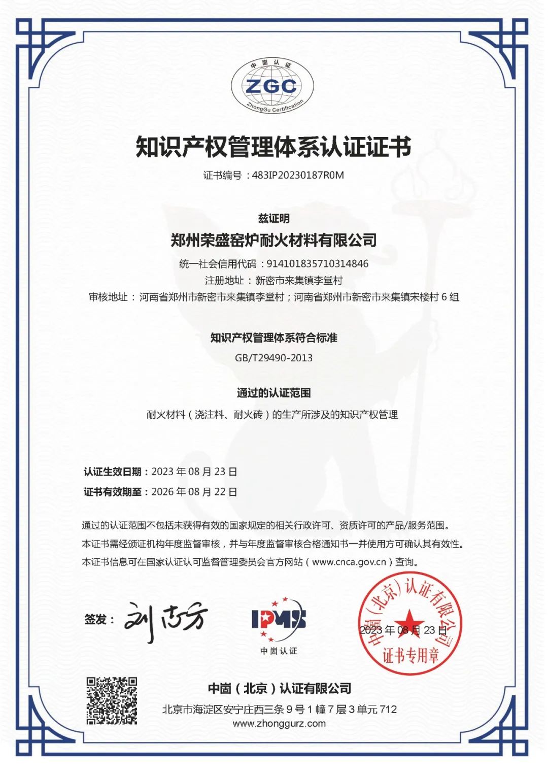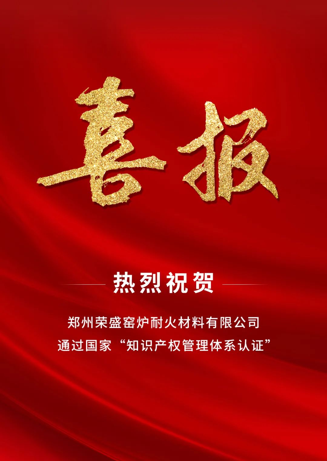 喜訊!榮盛耐材通過國家「知識產權管理體系認證」!